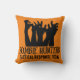 Amusant et festif, ce coussin est la façon parfaite de décorer votre maison cette saison d'Halloween. Le design comporte un tas de mains zombies tendant vers le haut et le texte "chasseurs de zombies" en noir avec un arrière - plan orange qui peut être changé. Joyeux Halloween.