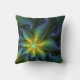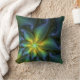 Coussin Etoile Abstraite, Bleu brillant Vert Or Fractal Ar