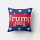 Cet oreiller patriotique et décoratif à jetons présente un design arrière - plan d'étoiles blanches sur un bleu foncé, tout comme les étoiles sur le drapeau américain. Le centre du coussin est orné d'un arrière - plan rouge avec l'expression "Trump 2024" imprimée en blanc.