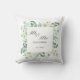 L'oreiller à jetons est doté d'une épaisse bordure de verdure, d'eucalyptus et de fleurs vert clair. Le design offre un script élégant pour "Mr & Mrs." et du texte personnalisé pour le nom. C'est un cadeau parfait pour un couple marié.