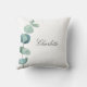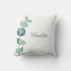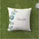 Coussin Eucalyptus nom vert script blanc