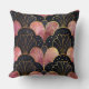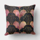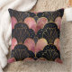 Coussin Éventails stylisés Art Déco en noir et rose
