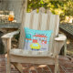 Servez quelque chose spéciale avec ce coussin extérieur de wagon-restaurant des années 1950. Les caractéristiques de conception de dessin de bande dessinée un immeuble de brique rouge avec les fenêtres bleues, les portes à deux battants grises, et un signe blanc qui indique, "wagon-restaurant" étaient perché sur le toit. Dans le parking, un deuxième signe est sur un poteau. Le signe a un arrière - plan de turquoise et une flèche rouge de clignotant indiquant la manière, le "wagon-restaurant de Don." Le signe a réalisé son travail parce qu'il y a une voiture jaune lumineuse avec des ailerons garés à côté de elle. Quoique nous ne puissions pas les voir, les passagers de la voiture doivent claquer leurs lèvres. Un carhop mignon et jeune est patinage de rouleau sa manière à la voiture. Ses cheveux de brune sont dans une queue de cheval pleine d'entrain. Elle porte un uniforme court et rose avec l'équilibre noir et un tablier blanc. Équilibré d'une part, le carhop porte un plateau noir contenant un hamburger géant et une régénération, l'old-fashioned, bouteille en verre de soude. L'arrière - plan derrière le wagon-restaurant est turquoise avec les nuages bleu-clair et les silhouettes des arbres de cèdre. Le bord opposé du coussin comporte un amusement, motif de brique rouge.
