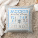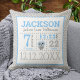 Oreiller de faire-part de naissance de bébé garçon aux pois bleus et gris adorablement mignon avec un petit hibou bleu doux. Modifiez pour inclure tous les détails de naissance de votre précieux paquet de joie.