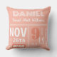 Coussin d'information sur la naissance des nouveau-nés moderne personnalisé avec des polices élégantes. Un coussin de la famille pour les détails de naissance de votre petit. Pièce de déco parfaite pour la chambre/la crèche d'un enfant, ou un cadeau super mignon pour la nouvelle mère, le nouveau père, et les grands-parents.