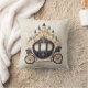 Cet élégant design présente un chariot de conte de fées féminin en bleu marine avec un château princesse derrière décoré de fleurs roses rousses.