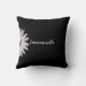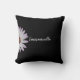 Cet élégant oreiller de lancer a une marguerite blanche et votre nom dans une police de script sur un arrière - plan noir. Imprimé sur les deux côtés !