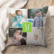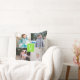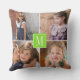 Faites votre propre collage photo et monogramme personnalisé Throw Pillow. Ce coussin moderne affiche un collage de quatre photos de famille et votre monogramme sur le devant et quatre photos différentes sur le dos. Au centre il y a un cadre vert citron avec votre monogramme. Il suffit de changer les images et le monogramme pour créer le vôtre ! Photographie © Storytree Studios, Stanford, CA
