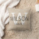 Rustic Linen Famille Monogrammed Personnalisez cet oreiller de lancer entièrement personnalisable! Lettres Monogrammes blanches et noires avec nom de famille personnalisable et lettre sur papier arrière - plan effet photo de lin, ou changer à votre propre arrière - plan ou image personnalisée. Cela ferait un cadeau parfait. mariage ou cadeau de chauffage domestique!