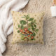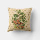 L'oreiller de Jeu de Plat présente une illustration botanique vintage de champignons, de fleurs et d'une variété de feuilles sur un arrière - plan crémeux de pêche et d'arlequine d'or.