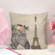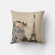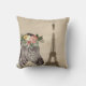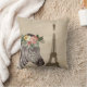 Élégant oreiller à jetons avec teinte sépia vintage photo arrière - plan de la Tour Eiffel avec recouvrement de belle aquarelle portrait zèbre avec couronne fleurie