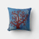 Coussin Faux brodé corail rouge sur bleu Abstrait