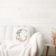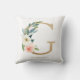 Élégant et féminin monogramme G floral oreiller avec des illustrations aquarelles de fleurs blanches, de verdure et de monogramme en faux papier d'or. Personnalisez en ajoutant un nom ou une courte phrase. Cet oreiller floral monogramme sera parfait comme cadeau personnalisé.