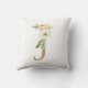 Élégant et féminin oreiller monogramme J floral avec des illustrations aquarelles de fleurs blanches, de verdure et de monogramme en faux papier d'or. Personnalisez en ajoutant un nom ou une courte phrase. Cet oreiller floral monogramme sera parfait comme cadeau personnalisé.
