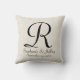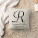 Cet oreiller monogrammé de 16" x 16" carré est décoré d'un faux burlap blanchi rustique texturé d'arrière - plan blanc. Monogramme et noms sont noirs. Le motif et le texte se répètent à l'arrière. Le tissu par défaut est le coton, mais aussi disponible en polyester. Décor maison unique et magnifique, classe, élégant et chic. Des couleurs neutres s'accordent avec n'importe quelle décoration. Tous droits réservés © 2014 Alan & Marcia Socolik.