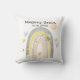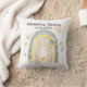 Ce coussin blanc est décoré d'un arc-en-ciel Boho neutre et doux avec des bourdons et des coeurs qui font un arrière - plan gai pour afficher le nom et la date de naissance de votre enfant. Personnalisez-le avec votre nom désiré pour un cadeau mémorable pour tout nouveau parent.