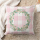 Ferme Pastel Pink Check Plaid Christmas Wreath Throw Pillow.