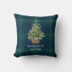 Personalized Christmas throw pillow featuring festive Christmas tree with classic navy and green tartan plaid design.