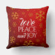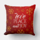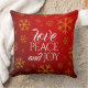 Coussin Festive Red Love, Peace and Joy with Snowflakes