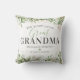 Coussin personnalisé arrière grand-mère avec élégants feuilles d'eucalyptus vert aquarelle, accents floraux or, le mignon dicton "l'arrière-grand-mère la plus aimée, merci d'être à nous", et les noms petits-enfants.