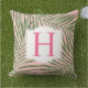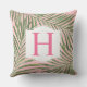Un oreiller de jet tropical présentant des frondes de palmier vert sur un fond rose clair avec un monogramme initial rose vif personnalisable dans un cadre à crochet. La palette de couleurs féminine associée au feuillage tropical crée un accent ludique et charmant pour les chambres à coucher, les nurseries ou les salons. L'initiale est entièrement modifiable pour personnaliser avec la lettre de votre nom de famille.