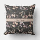 Coussin Feuilles De Pierre Rose Et Or Élégants Sur Noir