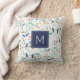 Aquarelles pastel feuilles botaniques et baies motif sans soudure aux tons pastel sur arrière - plan blanc. Monogramme personnalisé avec accent bleu marine carré.