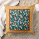 Coussin Feuilles Ginkgo sur Ocean Blue avec bordure or