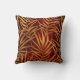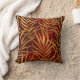 Cet oreiller de lancer présente un motif de feuilles de style tropical doré sur un riche arrière - plan de dégradé rouge bordeaux qui semble presque luisant. Les deux côtés du coussin ont le même motif.