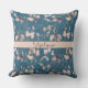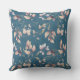 Coussin Feuilles Stylés En Pierre Rose Et Or Sur Bleu