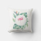 Ce petit oreiller design présente mon flamant rose aquarelle peint à la main et encadré d'oeuvres d'art feuilles tropicales en vert et bleu sur un arrière - plan blanc. Sur l'avant est un motif flamand unique. Un décor de maison de plage tropicale parfait, cadeau de mariage ou de Noël à moins de 50 $. Pour voir la décoration et les cadeaux de vacances assortis visitez les Invitations VG à www.zazzle.com/vg invitations