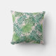 Ce coussin extérieur coloré présente un feuillage d'aquarelle de feuilles de palmiers tropicaux sur un arrière - plan de rose pâle et roux.
