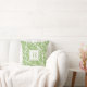 Joli et moderne monogramme jeter oreiller vert feuilles jettent oreiller oreiller. Facilement personnalisé avec l'inclusion de votre choix de monogramme initial qui apparaîtra sur l'avant et l'arrière.