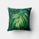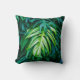 Coussin Feuilles verts tropicaux sur arrière - plan sombre