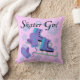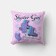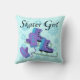 Notre T-shirts de conception de fille de patineur, tasses, sacs, cartes, coussins, horloges murales, souvenirs, sweat - shirts à capuche, et d'autres articles de patinage de thème comporte une paire de patins de bleu et de lavande et des mitaines sur une ficelle entourée par un bon nombre de flocons de neige hivernaux et de texte qui lit la fille de patineur !