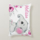 Coussin fille éléphant rose nom personnalisé