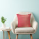 Cette coussin moderne présente des rayures de dégradé rose et rouge ceint.