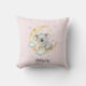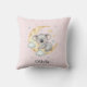 Cet oreiller personnalisé présente un bébé koala mignon recroquevillé en train de dormir sur un croissant de lune avec des étoiles brillantes sur un fond rose pastel doux et fantaisiste.