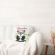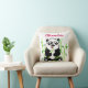 Coussin animal personnalisé de filles d'ours panda d'aquarelle. Ours panda noir et blanc mangeant le bambou vert. Customisez avec le nom dans la police cursive assez rose. Éditez pour customiser le texte à une couleur ou à un style différente. L'ours panda de bande dessinée de style d'aquarelle est cadeau personnalisé parfait pour un ours de koala, un zoo, un animal, ou un amant de safari. Conception des deux côtés de coussin. www.SamAnnDesigns.com