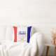 Throw pillow with flag of city of Cleveland, Ohio; flag with three vertical bands of red, white and blue with seal of the city in the center