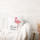 Flamant rose amusant Santa Claus Beach Noël nouveauté jetez oreiller spectacles flamingo rose en portant un casquette du Père Noël du nom de Sandy Claws. Un décor de maison de vacances sur le thème de la plage avec un accent de l'humour. L'envers est un solide rose assorti. Parfait pour les maisons de plage, Floridiens, snowbirds et flamands partout.