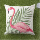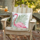 Coussin Flamant Rose Tropical Feuille de Palmier