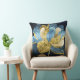 Une oeuvre florale audacieuse et contemporaine lance un oreiller avec une grande fleur stylisée dans les tons bleu foncé, or et blanc cassé doux. Les détails texturés, comme des feuilles, sur les pétales et les feuilles donnent à la pièce un effet brillant métallique, créant une esthétique moderne et luxueuse. Conçu contre un riche arrière - plan de marine, ce design abstrait met en valeur la beauté de la couleur, de la texture et de la forme, ce qui en fait une pièce de déclaration attrayante pour n'importe quel style.
