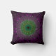 Ce coussin de lancer coloré rayonne d'un centre vert à un extérieur pourpre comme une fleur s'ouvrant à des perles de lumière. Un design complexe et abstrait qui a un effet d'illusion de verre.