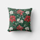Ce joli coussin de vacances a un motif de fleurs blanches, de feuilles verts, de baies rouges et de fleurs de poinsettia. Les images d'aquarelle sont placées sur un arrière - plan bleu foncé moyen des deux côtés du coussin.