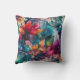 Coussin décorateur avec un tableau coloré turquoise, bleu, violet et orange de fleurs d'aquarelle.