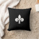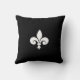 Coussin décoratif Fleur de Lis blanche sur fond noir. Fleur de Lis symbolise la royauté, la vertu et l'harmonie.
