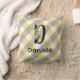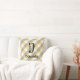 Coussin Fleur de monogramme en vichy gris bleu