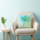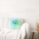 Coussin fleur de Daisy bleu turquoise vert stylisé pour ajouter à votre collection de décoration de maison / bureau / entreprise. Un cadeau sympa pour tous ceux qui aiment la nature, la planète, le thème organique, les vibrations positives, les couleurs vives, le minimalisme, les plantes, les arbres, la planète, etc. Structure, texture, lumière, vente. Jaune Vert, turquoise, violet. Chaque côté est légèrement différent. Fond gris.