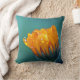 Ce magnifique oreiller à jetons turquoises est orné d'une photo de fleur de marigold avec des gouttes de rosée.